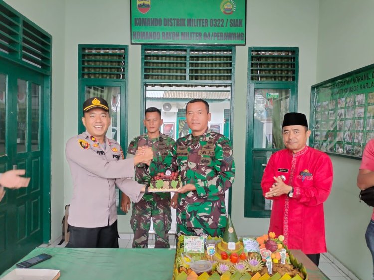 HUT TNI di Kecamatan Tualang di Meriahkan oleh Kapolsek dan Camat di Mako Koramil 04 Perawang