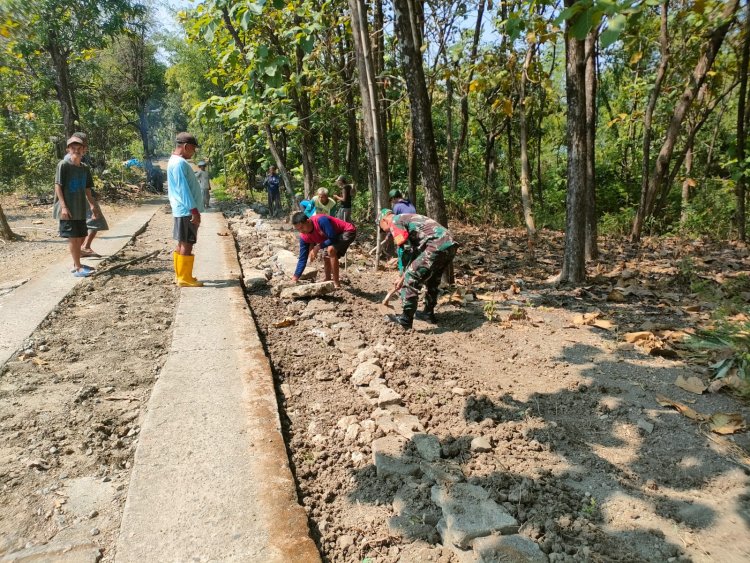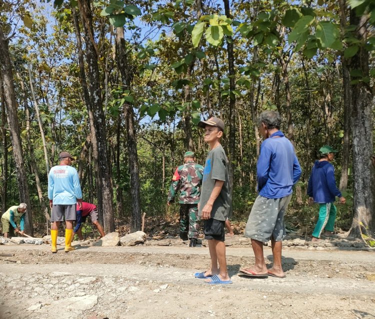 Babinsa Kemusu dan Warga Gotong Royong Perbaiki Jalan Desa