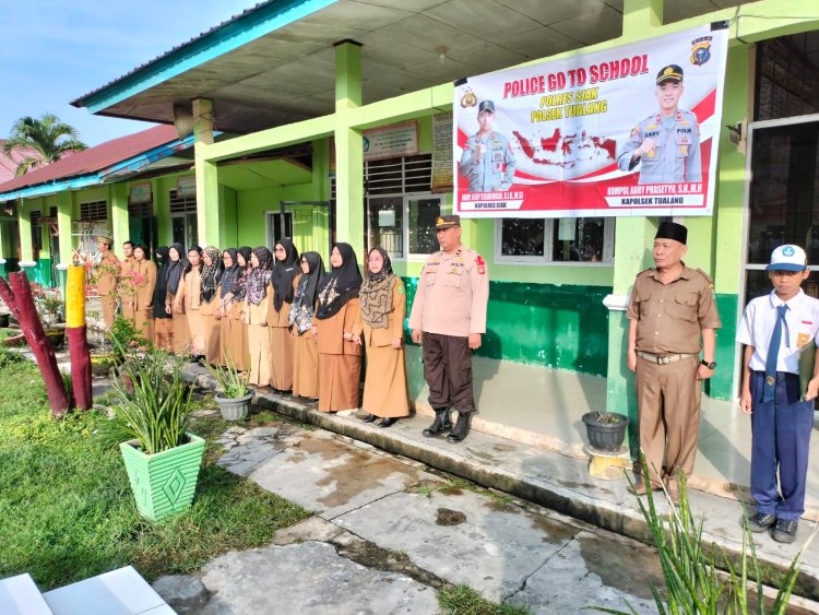 TOPIKPUBLIK.COM - Perawang - Siak/Riau - Berbagai upaya pencegahan tindak kriminal yang melibatkan kalangan pelajar, terus dilakukan Polsek Tualang-Polres Siak. Bahkan Kapolres Siak, Akbp Asep Sujarwadi S.I.K,M.S.I secara khusus telah menginstruksikan seluruh anggotanya untuk melaksanakan program Polres Siak yakni Police Goes to School. Senin,(23/10/23).pagi