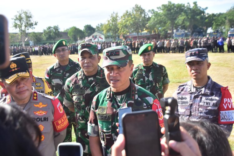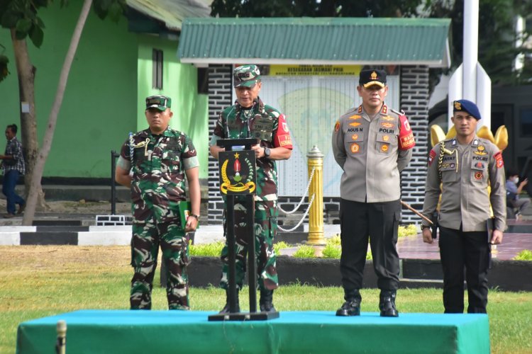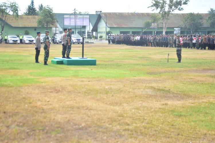 TOPIKPUBLIK.COM - PALU - Pangdam XIII/MDK Memimpin Apel Gelar Pasukan Kunker RI 1 Wilayah Sulteng, Pangdam XIII/Mdk Mayjen TNI Candra Wijaya, M.A., didampingi Danrem 132/Tdl Brigjen TNI Dody Triwinarto, S.I.P., M.Han., memimpin Apel Gelar Pasukan Pengamanan VVIP dalam rangka Kunjungan Kerja Presiden RI Joko Widodo di wilayah Sulawesi Tengah. Apel tersebut dilaksanakan di Lapangan Yonif 711/Rks Jl. Emy Saelan Kota Palu pada Senin (25/03/2024).